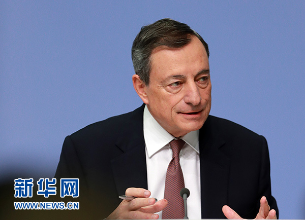 12月14日,在德國法蘭克福的歐洲中央銀行總部,歐洲央行行長德拉吉出席新聞發布會。新華社記者 羅歡歡 攝