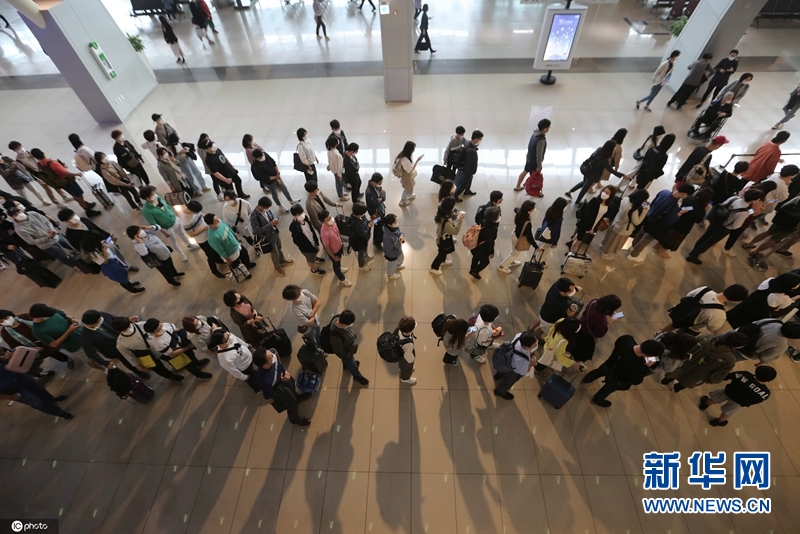 韓國首爾,韓國民眾中秋出行,金浦機場人山人海。(圖片來源:東方IC)