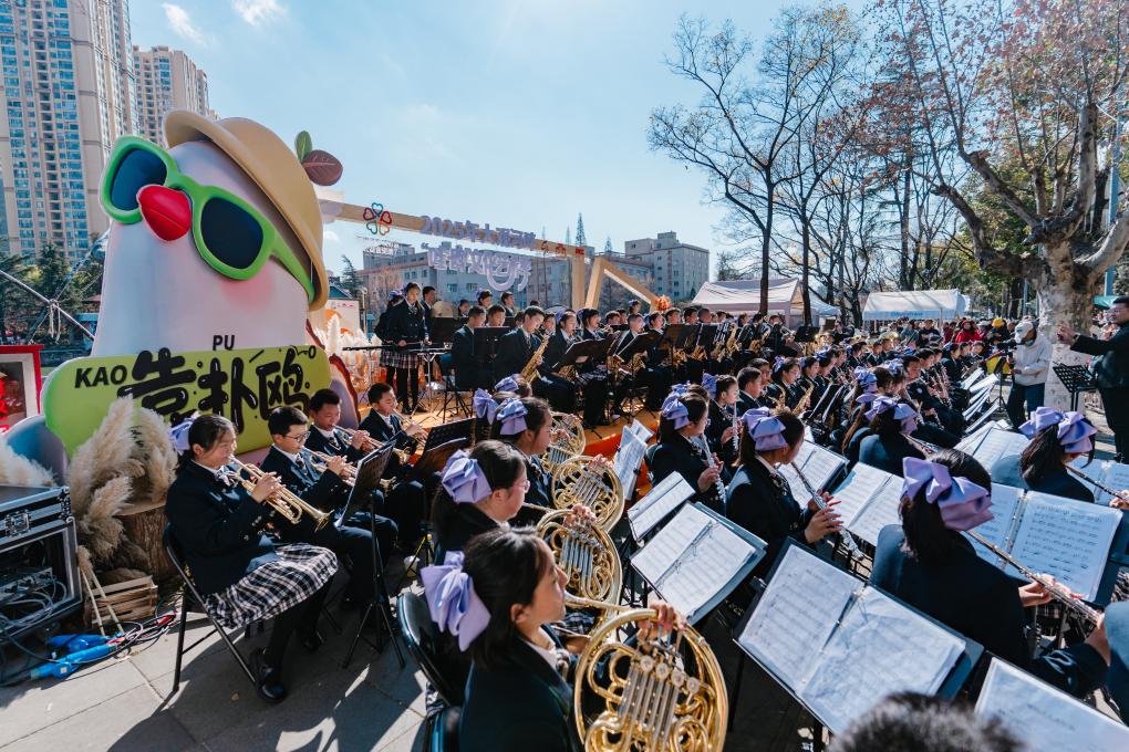27日下午,一場高水準的百人青少年管樂團專場演出在紅嘴鷗雲集的大觀河畔舉行,一百多名當地中學生為市民、游客帶來《PARTYROCK》《保衛黃河》等多首曲目。