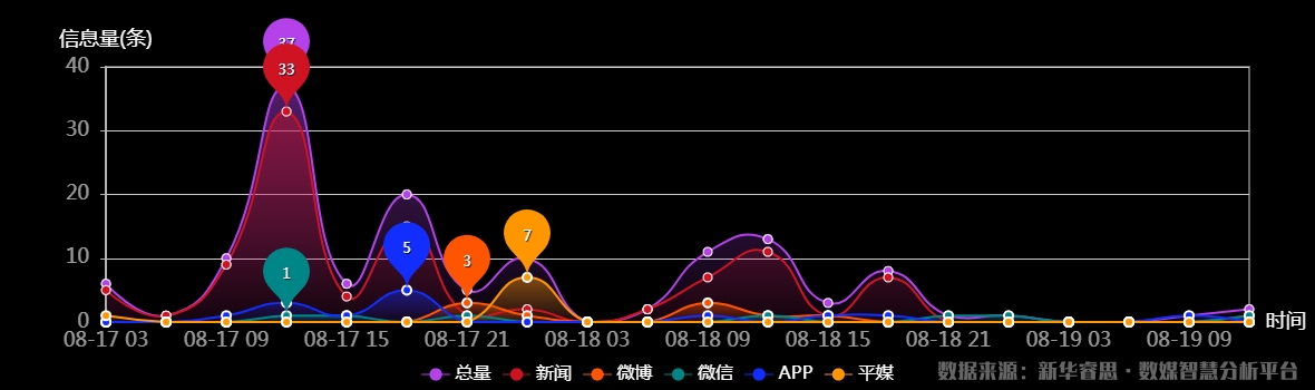 截至目前,該文章在互聯網上傳播時長為2天10小時30分鐘,傳播總量157篇,有110個媒體參與傳播。其中2020-08-17 15時是傳播的高峰期,共傳播18篇文章。(數據來源:新華睿思•數媒智慧分析平台)