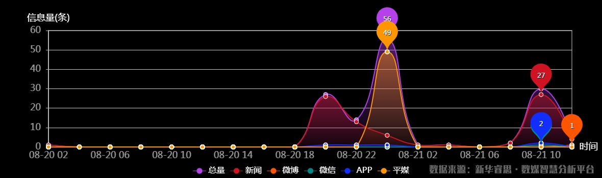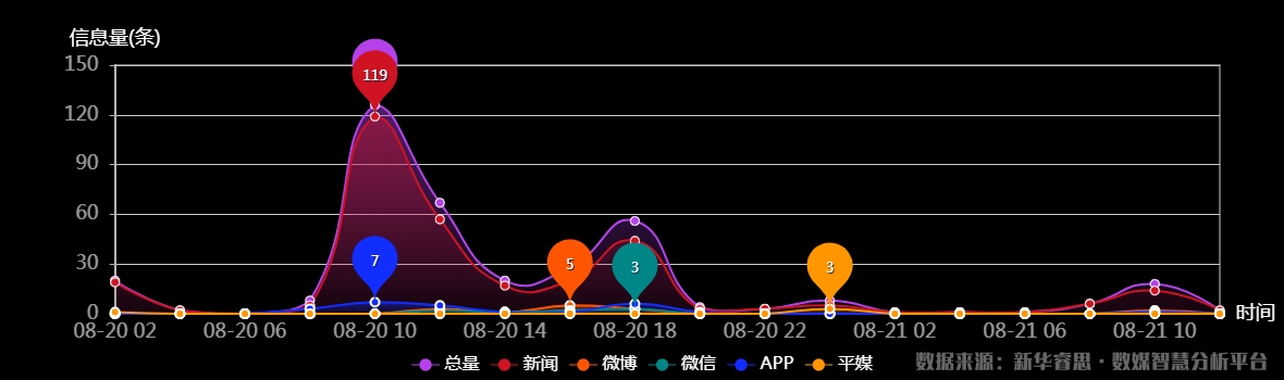 截至目前,該文章在互聯網上傳播時長為1天10小時29分鐘,傳播總量147篇,有122個媒體參與傳播。其中2020-08-21 00時是傳播的高峰期,共傳播54篇文章。(數據來源:新華睿思•數媒智慧分析平台)