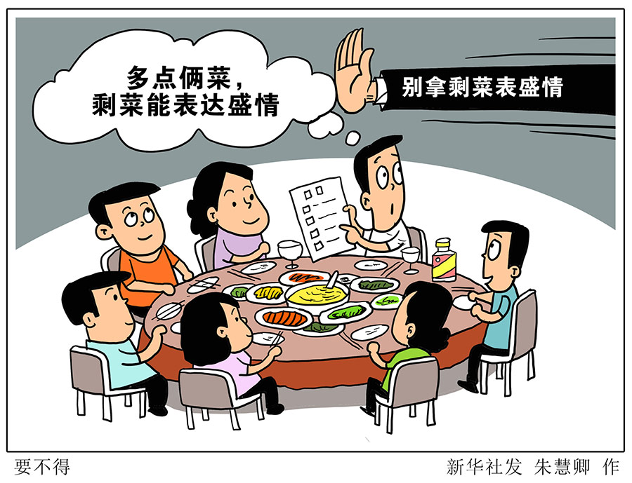 強調堅決制止餐飲浪費行為切實培養節約習慣,在全社會營造浪費可恥節約為榮的氛圍。這一重要指示發人深省、飽含啟示。在日常生活中,主客散席時留下半桌剩菜的場面並不少見,寧可點多、絕不能少,這種以剩菜表達盛情的心態和行為要不得。(記者方問禹、馮源)